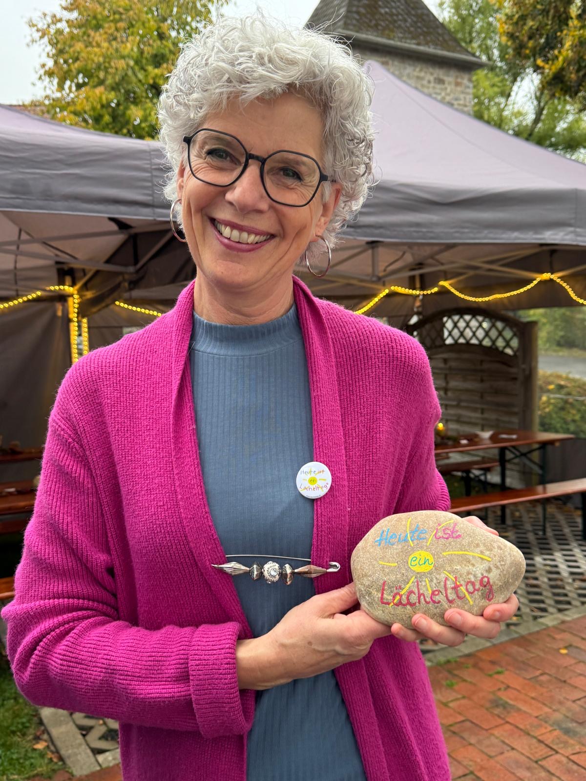 Immer sichtbar. Immer greifbar. Immer fröhlich – zum Beispiel mit dem Lächeltag-Logo auf Postkarten, Aufklebern, Buttons. Schreiben Sie uns gern: info@people-foerst.de.